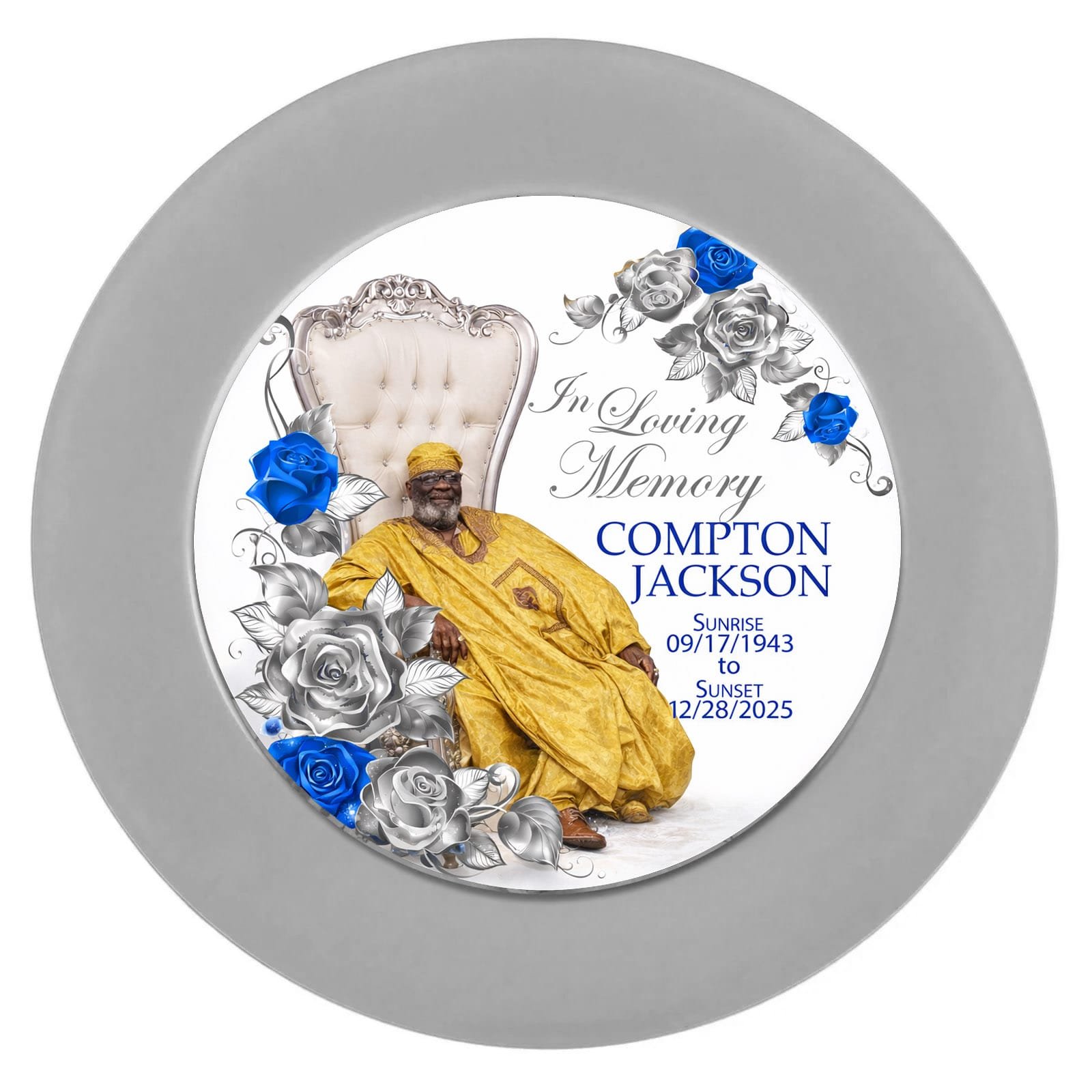Blue and silver flower theme paper plate insert. These make beautiful place cards.
