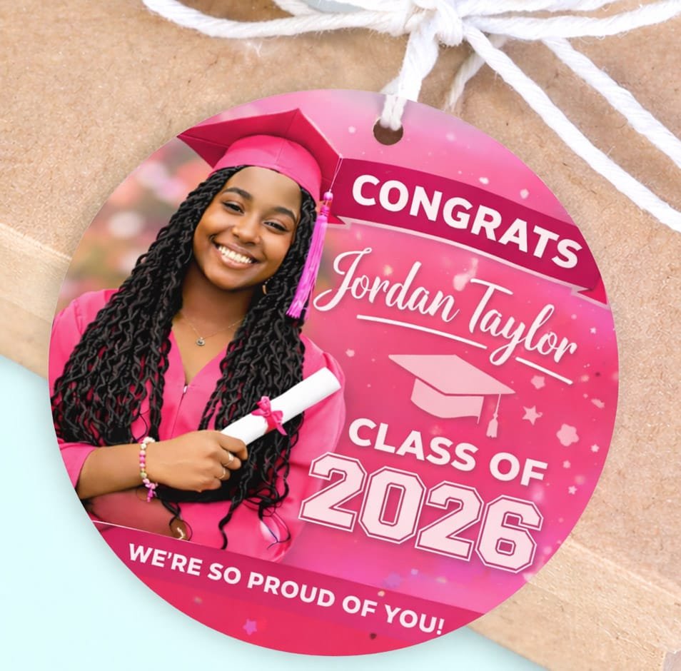 Graduation Favor Gift Tags with Photo Pink Glam