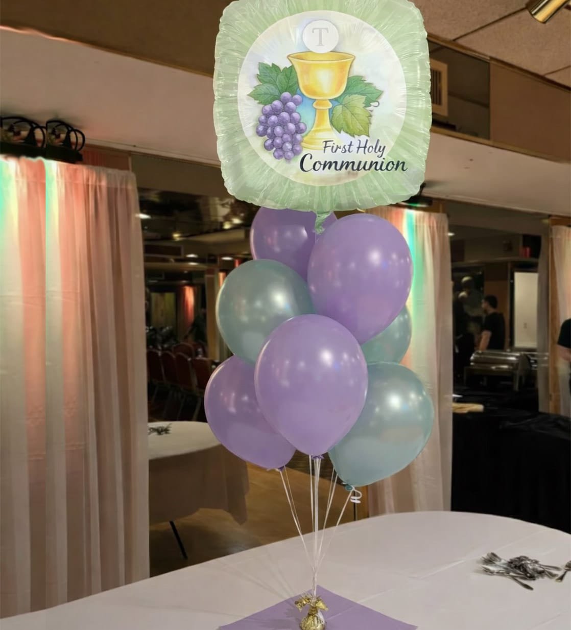 Add some color and flair to your party decorations with balloons. You can get your four balloon bouquet table centerpiece set up for your next event. This set up includes 6 latex balloons filled with helium and coordinating curling ribbon attached to a balloon weight. This simple balloon set up is great for any event, a Christening, Communion, Baby Shower, Bridal Showers and other event your celebrating.