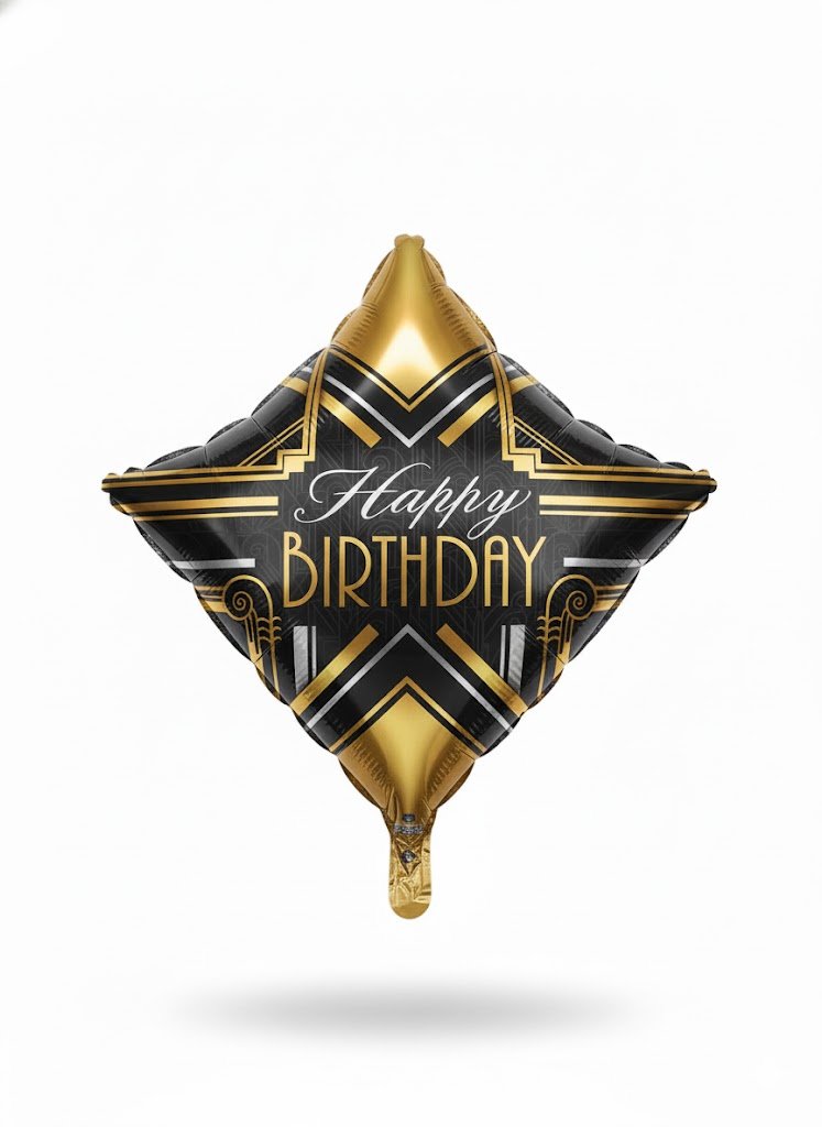 Add elegance and style to any birthday celebration with this 18-inch Diamond-Shaped “Happy Birthday” Mylar Balloon. Featuring a sophisticated black and gold art-deco design, this balloon exudes luxury and class. The metallic finish and geometric patterns make it a perfect choice for milestone birthdays, adult parties, or glamorous events with a chic, modern touch.