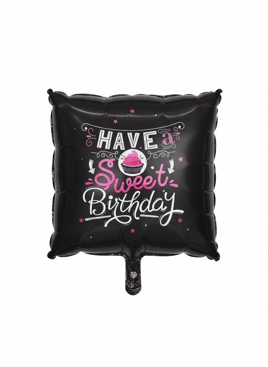 Make birthdays extra sweet with this 18-inch Square “Have a Sweet Birthday” Mylar Balloon! Featuring a bold black background, playful white and pink lettering, and a delicious cupcake design, this balloon is perfect for anyone who loves a mix of fun and elegance.
