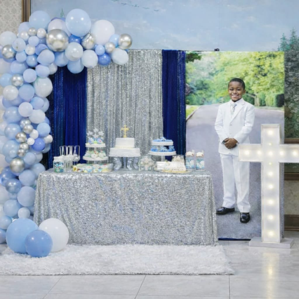 Celebrate this sacred milestone with a beautifully styled setup that honors faith, family, and tradition. Our Heavenly Grace Communion Décor Package is thoughtfully designed to create a serene, elegant atmosphere for your child’s First Holy Communion, allowing you to focus on the moment while we handle every detail.